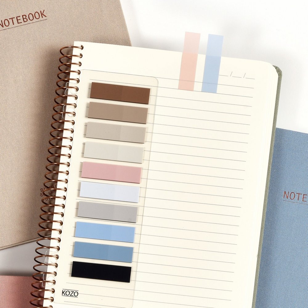 KOZO Index faner i stilfulde, neutrale farver er selvklæbende og aftagelige for nem mærkning og organisering. Indeholder i alt 200 faner i 10 forskellige trendy farver. Passer fint sammen med andre KOZO-produkter og passer især godt til KOZO Premium Notebook.