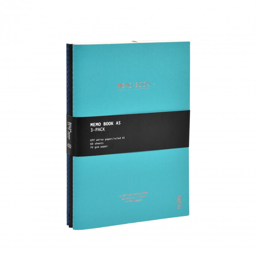 KOZO Notesbog A5 3 Pakke Navy Steel Blue Black